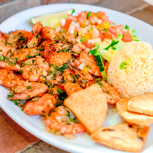 Camarones al ajillo o empanizados Disfruta 1/2 libra de camarones sazonados al ajillo o empanizados, acompañados de arroz, tortilla y ensalada fresca, bañada con aderezo. |